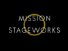 Logo for Mission StageWorks, a community center for theatre and storytelling, featuring a black background, a gold circle, and white text.